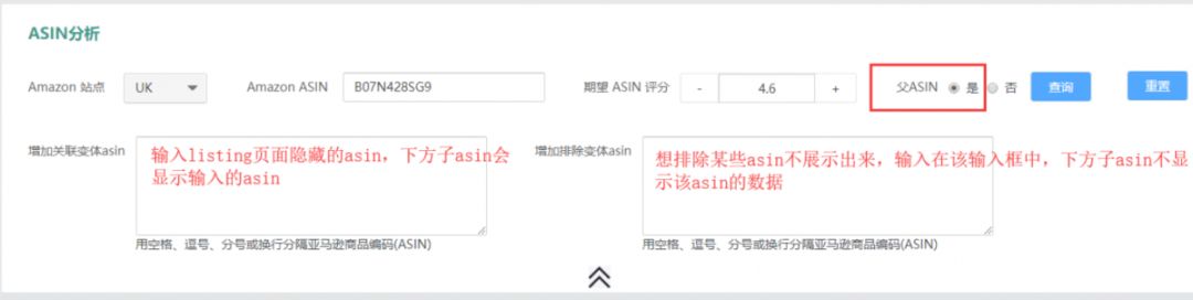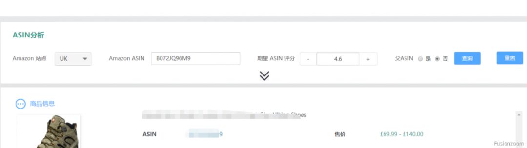 选择需要分析Asin的站点、Asin期望评分,以及是分析该Asin父评分还是子评分。设置完毕,一键“查询”,则会自动对Asin进行爬取分析。