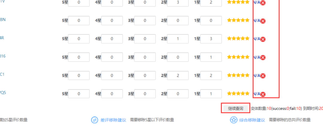 此外,如果因为网络等原因导致没有爬取完全,则可以在数据下方点击“继续查询”针对爬取失败的变体重新爬取。