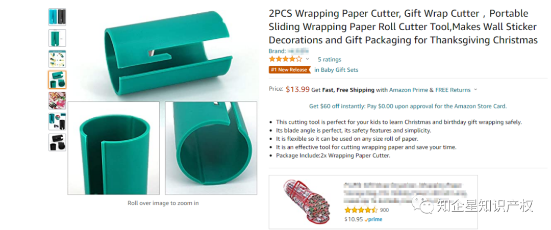 今天在亚马逊看到一款礼品纸切割刀,它是美亚站新品榜的#1 New Release in Baby Gift Sets,售价13.99美金,留评5颗星。