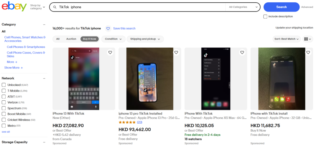 苹果和谷歌因担心遭到起诉,此前已将 TikTok 从其应用商店中下架,截至本文发稿时的 1 月 23 日,已经卸载了 APP 的用户仍无法从应用商店下载这款应用。有人在 eBay 上出售安装了 TikTok 的 iPhone 手机,售价高达数千美元。