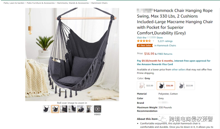 亚马逊美国站爆款,秋千吊床防侵权检索案例分享。