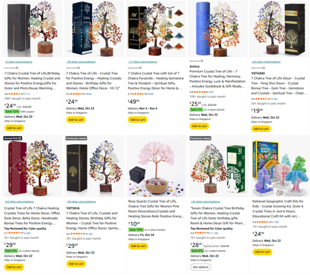 Amazon上热销的水晶树,同质化程度高