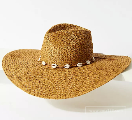 1、puka shell Seashell-Trimmed Hats:类似款,贝壳装饰遮阳帽。 参考价格:$15-$25