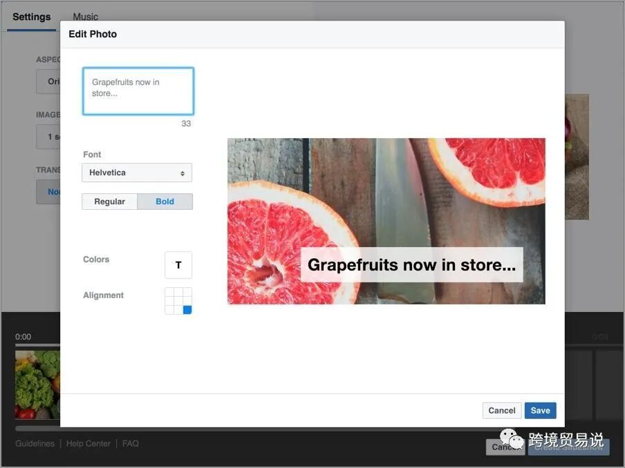 (10)如果您想添加文本,请点击每张照片上的“笔”符号。屏幕上将显示编辑照片弹出窗口,您可在此输入说明并选择字体、大小和位置。点击保存。
