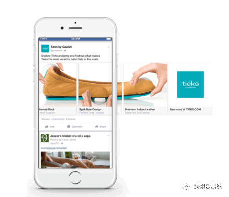 鉴于此,Facebook推出了精品栏广告格式,帮助广告主以图像为载体打造沉浸式体验,让消费者能更轻松地发现、浏览和购买商品及服务。