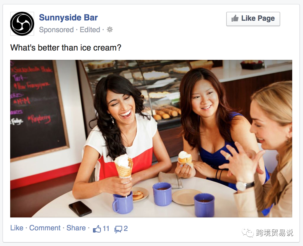 3、几分钟即可创建一条照片广告:您可以直接在 Facebook 主页创建照片广告,使用一张图片发布帖子并速推。