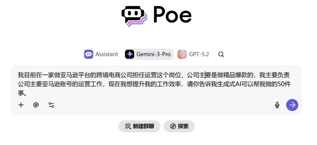 说了那么多,那么我们跨境电商人,怎么找到学习的目标和方向呢?接下来我就直接上图文实操了!你可以让AI帮你去找:我们打开Gemini-3-Pro,给他发一个这样的指令: