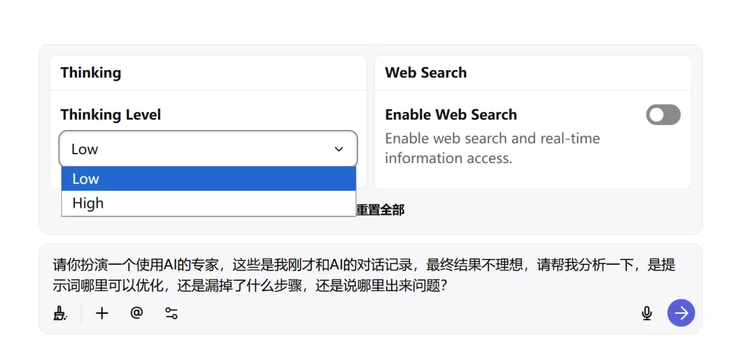 其实啊,遇到这类问题也不要慌, 把遇到问题的对话截图或复制下来,发给其他AI大模型,让它帮你分析就好了。例如你可以这样说: