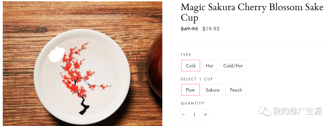 主要就买这一款产品,魔术樱花酒杯,产品售价也算贵,单个酒杯19.95美元,但是你想包邮就的订单金额超过30美元。