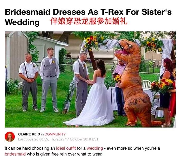 拿“恐龙”送女友,不是找抽吗?但在国外,扮成“恐龙”成了一种流行,连婚礼也用上了。