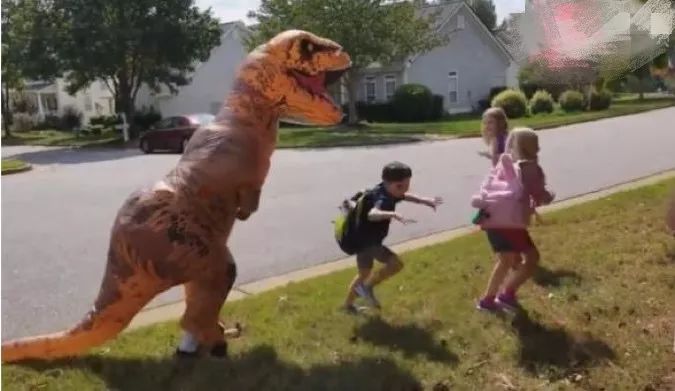 外国爸爸们就更“坏”了,故意装扮成恐龙,等孩子放学下了校车,就突然窜出。孩子们虽然吓得四处逃窜,但等他们回过神来,其实是相当喜爱。