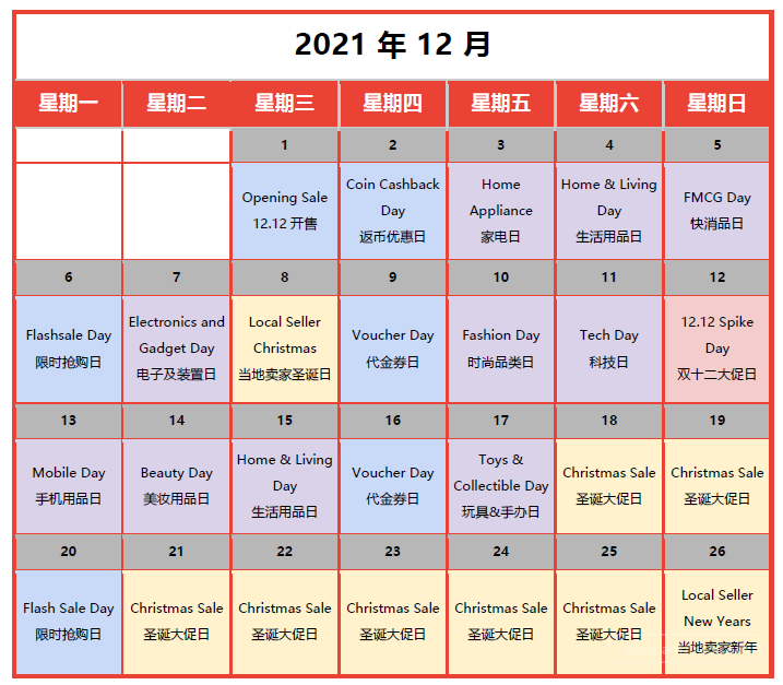 墨西哥站点黑五&双十二活动日历