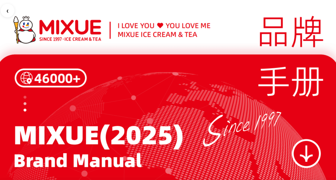 围挡上也提供了二维码提供更多信息 - 包括蜜雪2025年版的英文品牌手册: