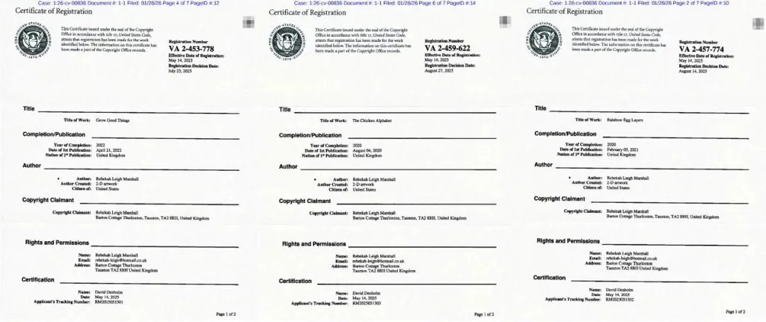 【26-cv-00836】Rebekah母鸡插画版权维权!跨境卖家速看避雷!