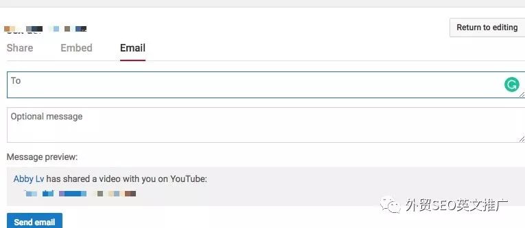 点击Email,输入用户的邮箱,直接将视频分享给对方。