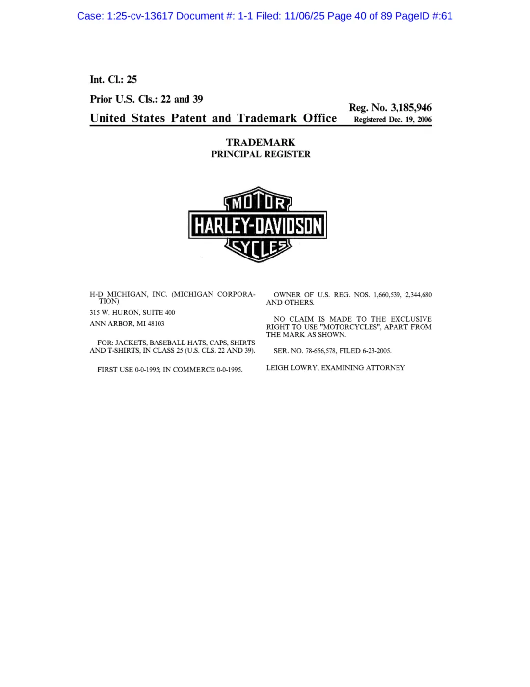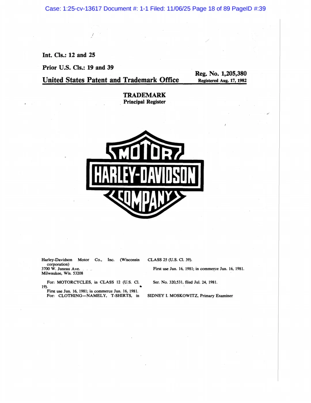 Harley-Davidson Motor Company, Inc. 是一家威斯康星州corporation,总部位于威斯康星州密尔沃基市西朱诺大道 3700 号,是全球知名的摩托车制造商,同时涉及服装、珠宝、皮革制品、各类配饰等多种产品和服务。