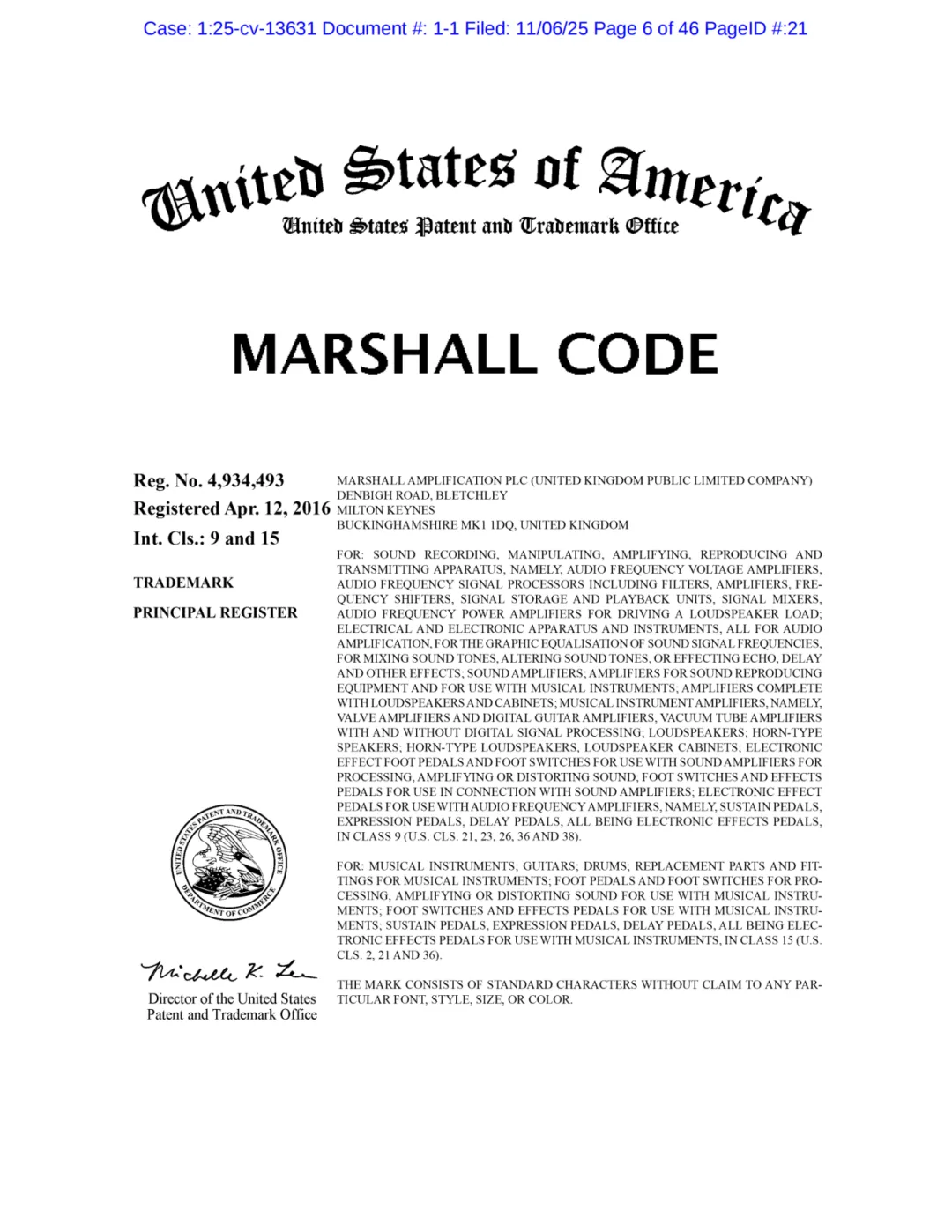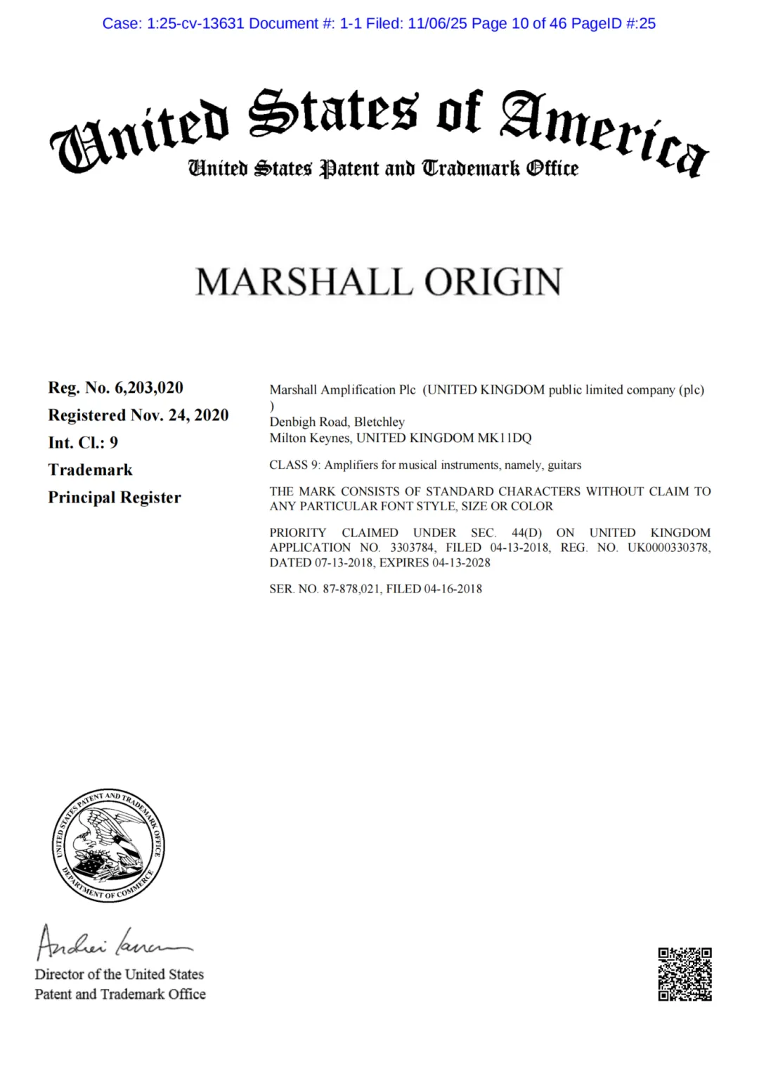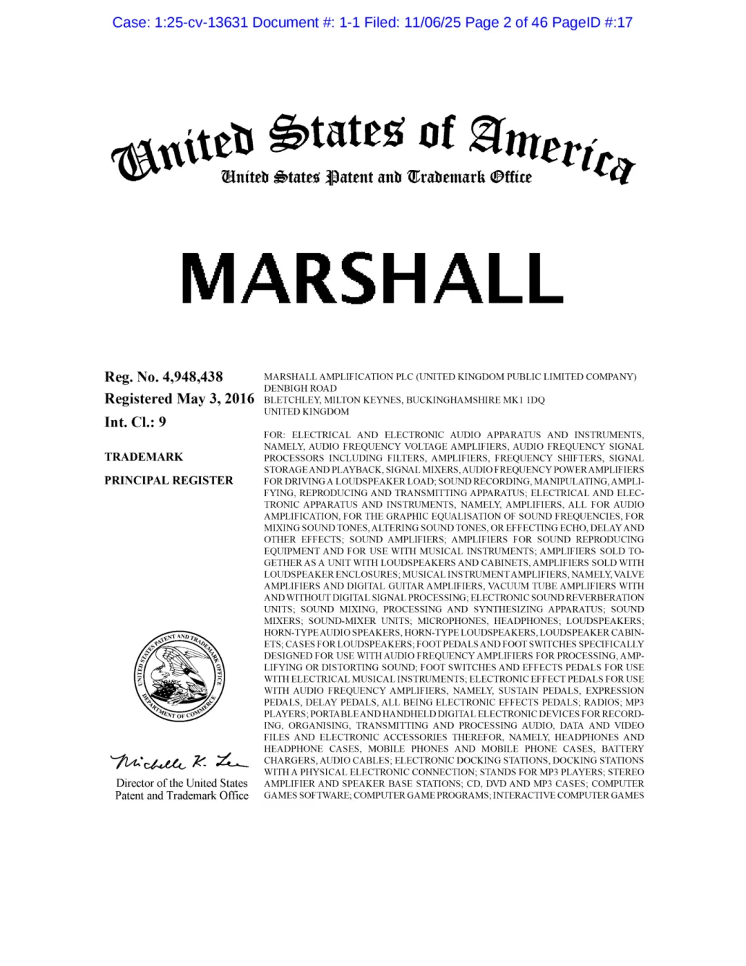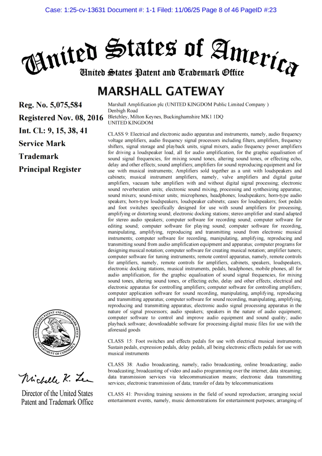 ·Marshall Amplification PLC(2025-cv-13631-13709)