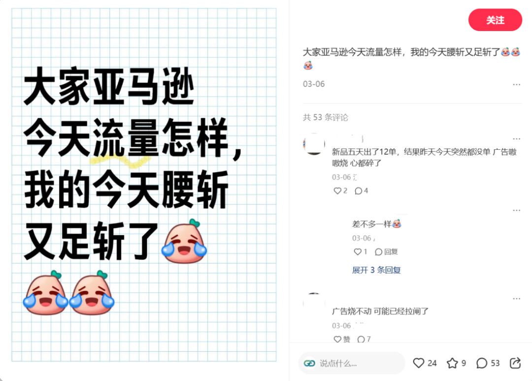也许还有很多卖家把卷低价当成救命稻草,但一位年销过亿的卖家坦言:“低价策略只能续命,无法长存。”还有更多卖家在社媒上抱怨,“参加了平台促销但不见效果”“广告翻倍订单却不见涨”。