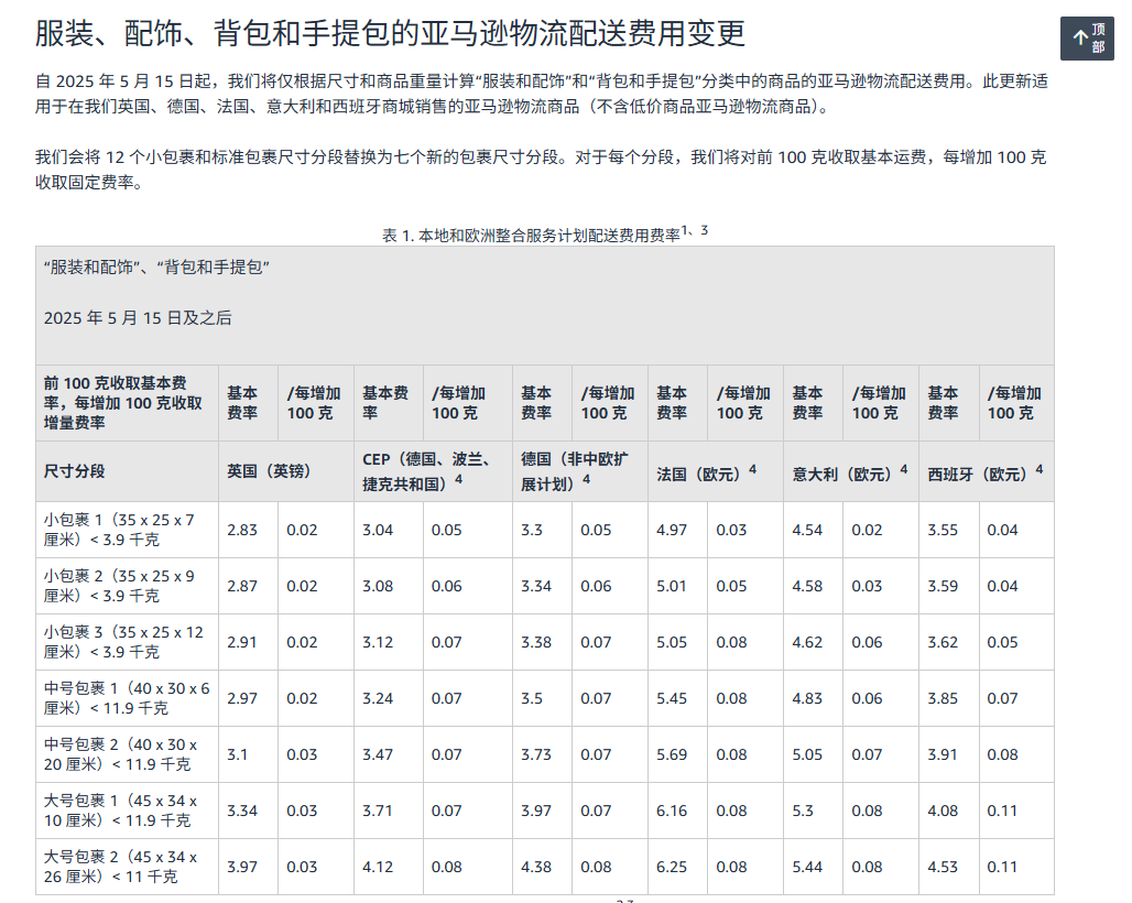 近日,亚马逊欧洲站给大家带来了两项利好政策!即将针对服装、配饰、背包和手提包等包裹类商品实施物流费用调整!这次调整不仅降低配送成本,还直接免除部分高退货率品类的退货处理费,5月15日开始生效!
