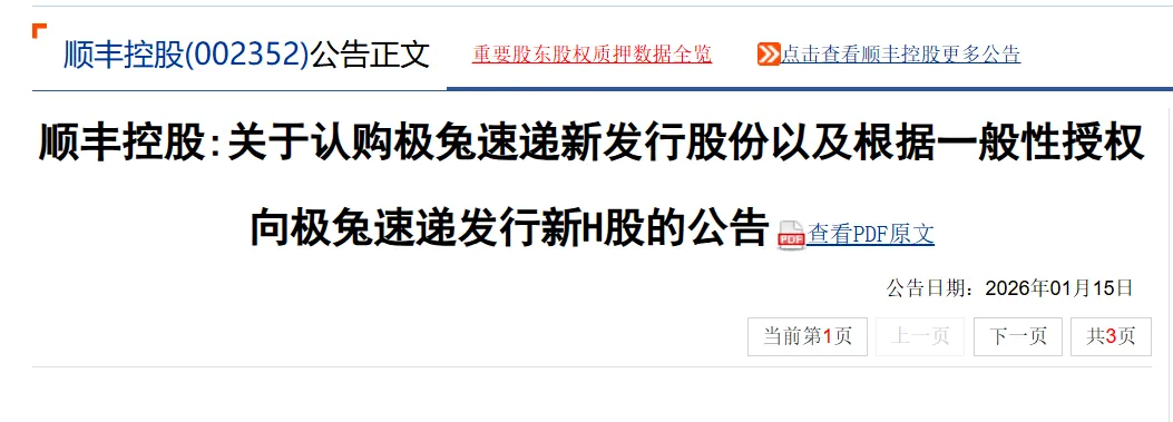 继去年申通收购丹鸟、德邦与安能退市后,快递行业再现重磅动作:国内收入最高的顺丰与扩张迅猛的极兔宣布战略互持股份,投资额达83亿港元。交易完成后,双方将形成深度绑定——极兔持有顺丰4.29%股份,顺丰则握有极兔10%股份,并计划派驻董事。