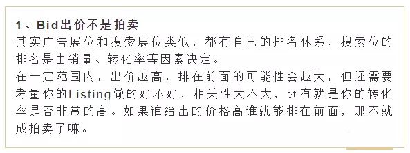 另外,关键词是不会内部影响竞价的。一个好的CAMP建议长期持有,可以在里面加词,权重会有所提高。至于那些表现差的CAMP,建议停掉、归档、重新开。Bid是考虑最近一周的均价,如果调整过高,要几倍竞价,那么这个展示就要根据自己预算去考量了。