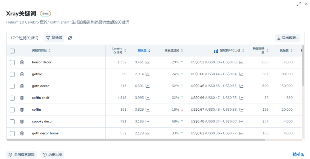 使用Xray关键词工具,对于快速进行一些简单的产品研究非常有效。
