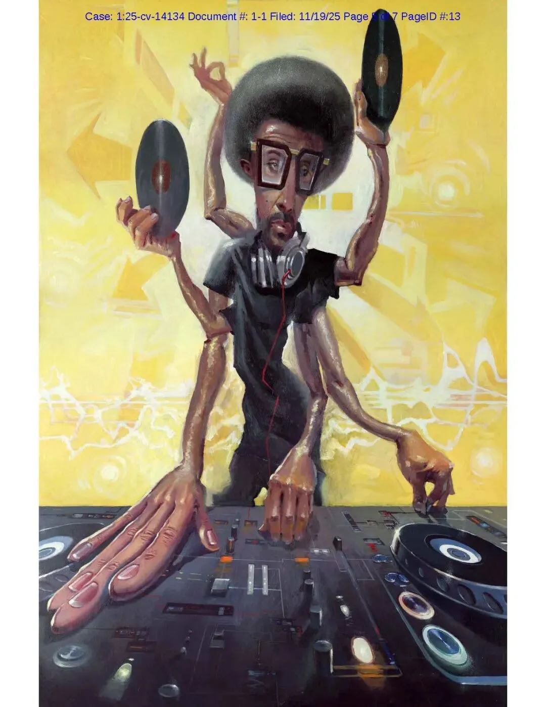 原告Justin Bua是美国纽约知名城市写实(Urban Realism)艺术家、作家与教育家,毕业于帕森斯设计学院。作品以夸张拉长的人物比例、流畅线条与霓虹色调描绘街舞、DJ、拳击、街头篮球等都市次文化场景,在 MTV、VH1、Rock the Vote 等主流媒体亮相,并被微软、MTV、ESPN、Capcom 等企业收藏。其限量版画与 NFT 在佳士得、苏富比线上拍卖屡创高价,全球销量逾百万张。