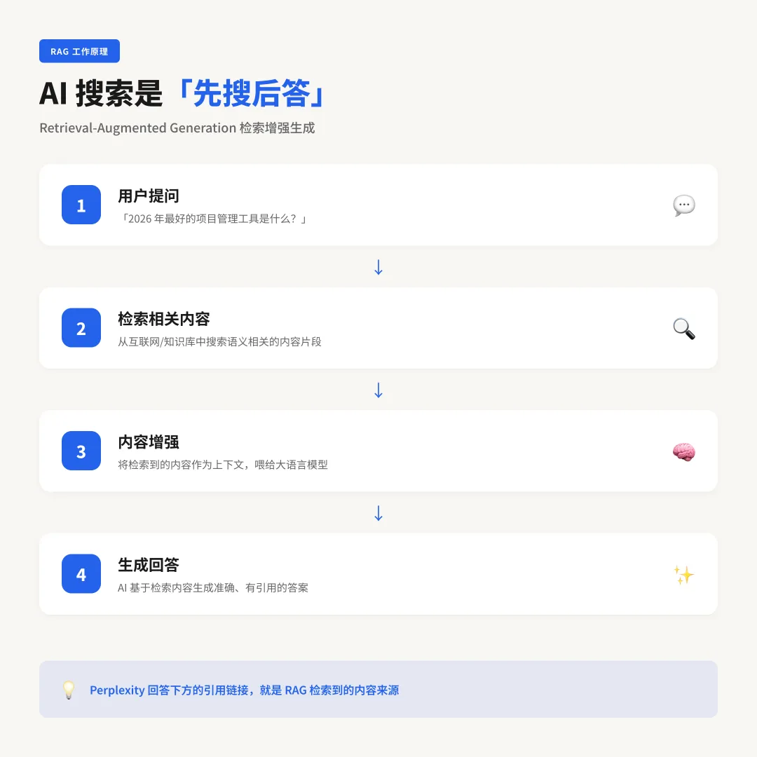 一、先搞清楚:AI 搜索是怎么工作的?