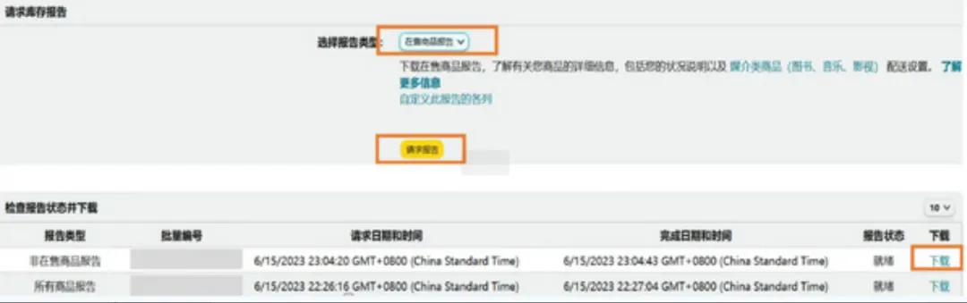Step1:进入亚马逊卖家平台,跟随路径“数据报告>库存报告”,进入“库存报告”页面。