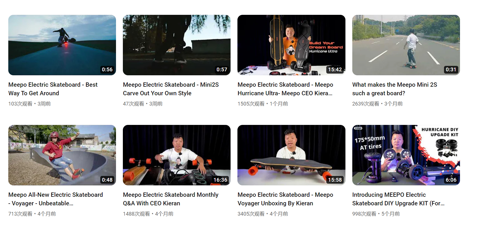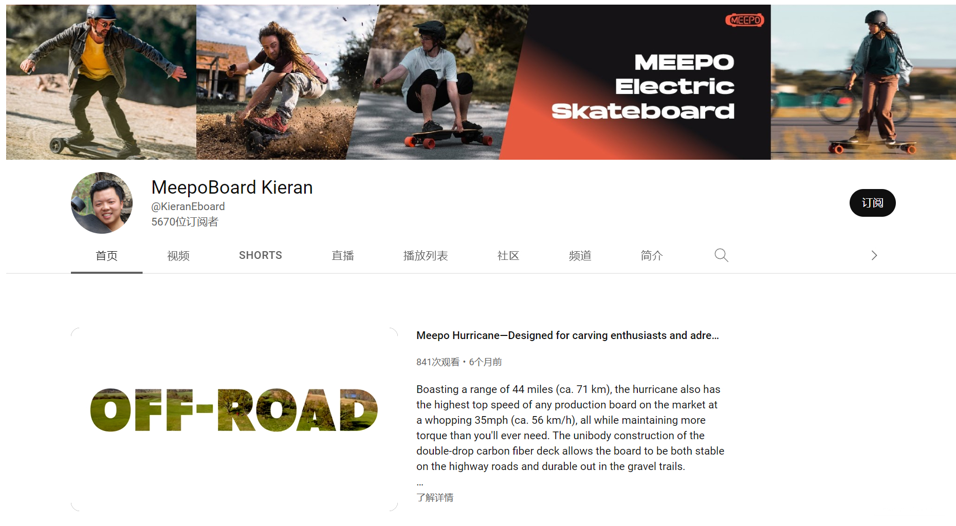 以YouTube举例,MEEPO除了官方账号外,还有一个创始人毛力的个人账号@MEEPOBoard Kieran,其中有很多由毛力自己出镜拍摄的视频,甚至推出新品也会由他来介绍。