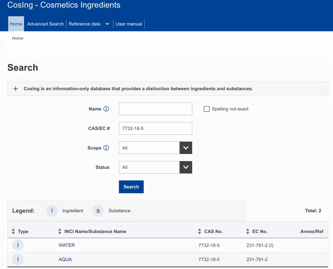 1. 成分出现在CosIng数据库中,并不代表该成分已被批准用于化妆品。