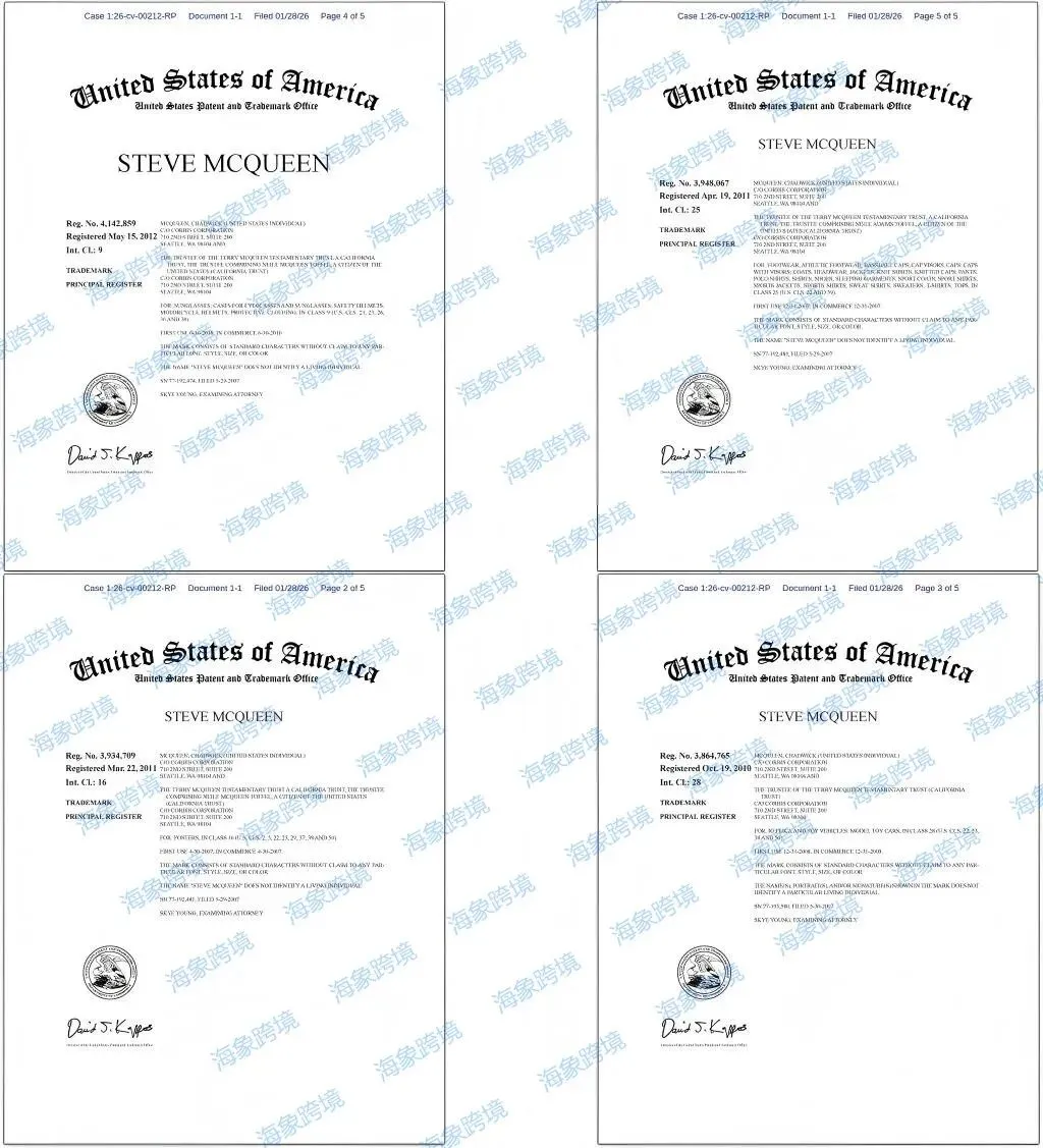 商标冲击26-cv-32、25-cv-13753皮包18类商标和26-cv-212美国演员史蒂夫·麦奎因和26-cv-1266泛美世界航空 PAN AM