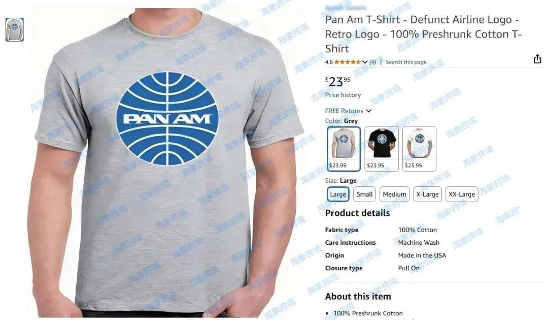 原告 Pan American World Airways LLC 成立于1927年3月14日,曾是美国最负盛名的国际航空公司。它是航空业的先驱,开辟了许多至今仍在使用的跨大西洋和跨太平洋航线,并以其标志性的蓝色地球标志而闻名。以下商标注册在多个类目,相关产品包括但不限于服装、帽子、行李箱、飞机模型、海报和多用途手提包。