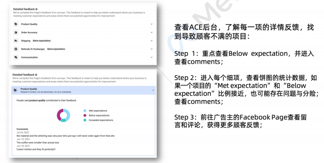 对于电商品牌而言,消费者的广告体验至关重要,因为广告是客户体验历程的第一个触点。为了便于广告主了解消费者的体验,Facebook会征求用户点评他们在Facebook看到广告后购买的商家,这些反馈能够帮助广告主了解并改善客户体验,投放可信的广告有助于建立品牌公信力和可信度、吸引客户购买和提高转化率。