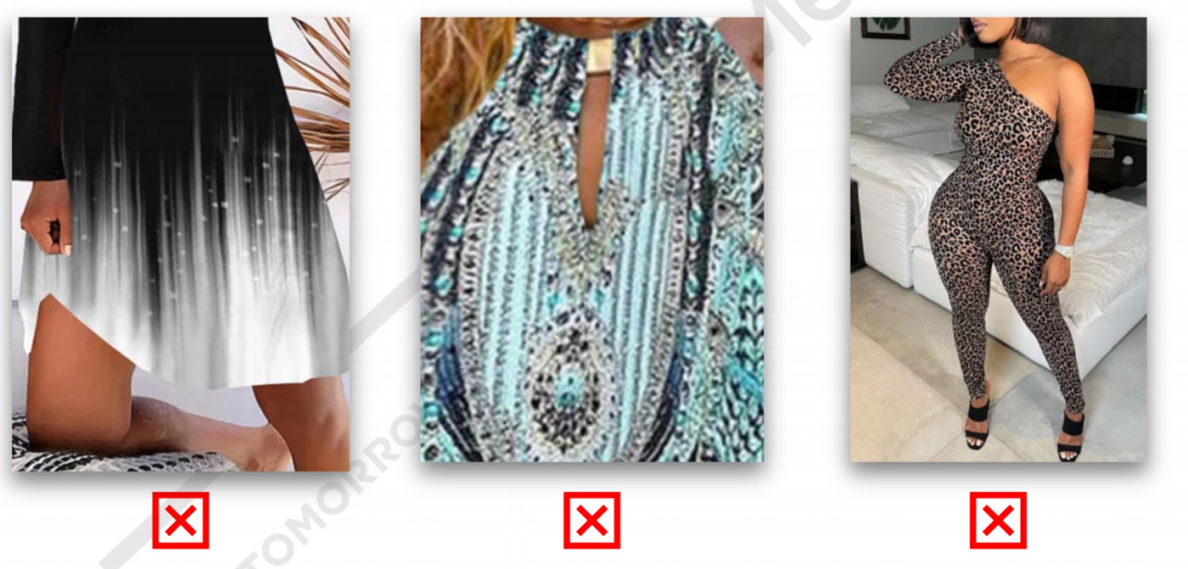图:商品图片常见问题:使用网图,看不清细节,过渡PS导致效果失真