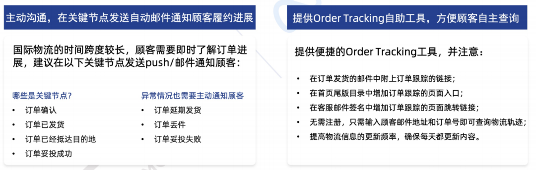 (3)主动沟通,提供自助工具,提高整个履约体验的透明度