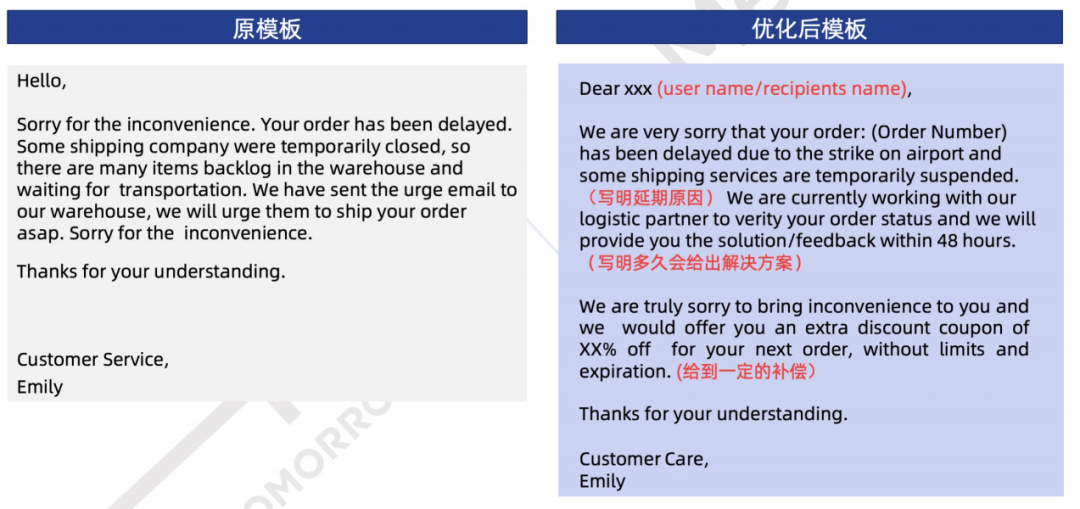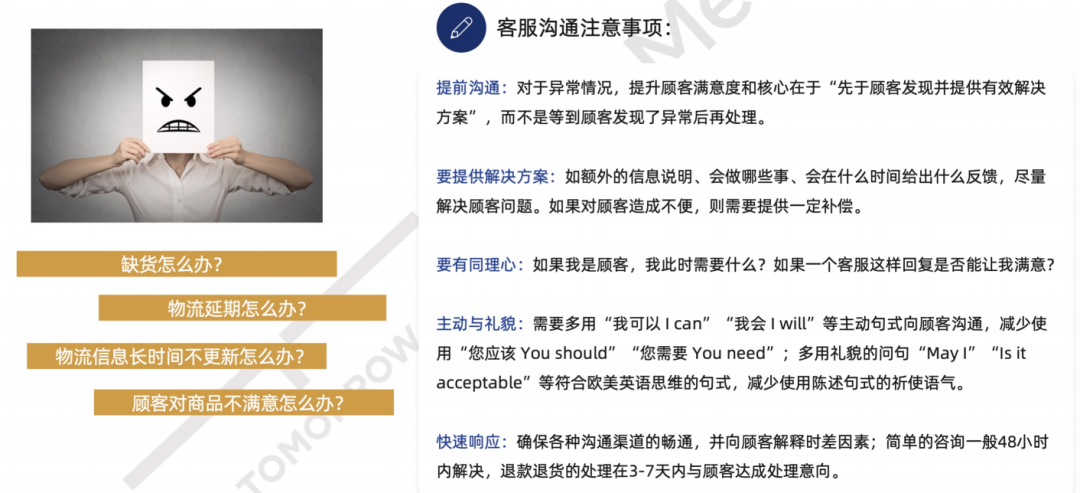 (1)主动沟通,使用欧美顾客习惯的句式,快速处理售后的异常情况