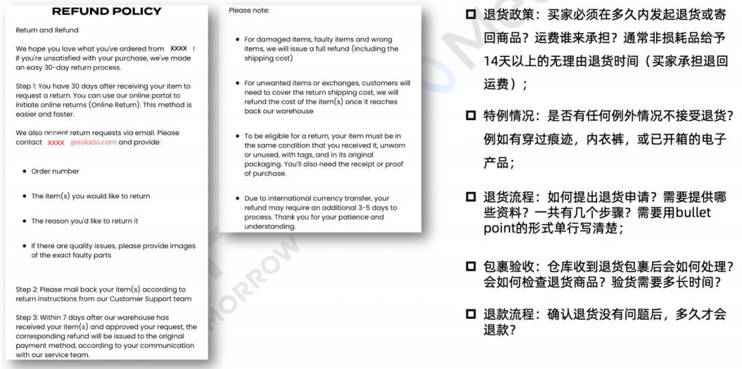 *通常在商品详情页沟通物流政策(包括发货时间、物流方式、费用、时效)和退换货政策。