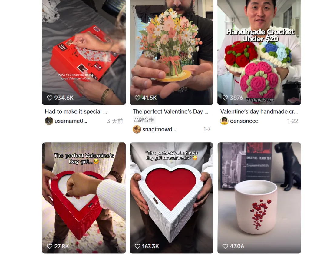 进入1月后,TikTok美区的内容风向逐渐聚焦在“情人节送什么”“如何制造惊喜”“节日布置灵感”等主题上,一批围绕Valentine’s Day的商品开始密集出现,并迅速完成冷启动。