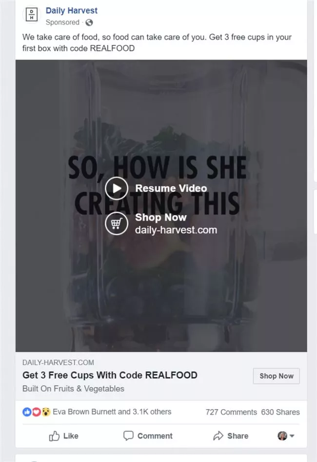 Facebook的广告图片通常为1.91:1的比例(通常为1200 x 628像素),但其正在放宽这一规定,并允许更加灵活的图片比例——从9:16到16:9。如果你想在Instagram和Facebook上使用方形图片(1:1比例)来减少设计工作,那么这对你来说是一个好消息。如下图所示,大尺寸图片在手机上的观感更加舒适,在Facebook的News Feed(动态消息)中也更加抢眼。