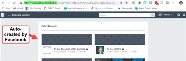 Facebook将继续推动营销人员使用Business Manager。去年,该平台将使用Custom Audience Email列表的功能改为仅对使用Business Manager的用户开放。如下图所示,他们还自动为许多营销人员创建了Business Managers账户。