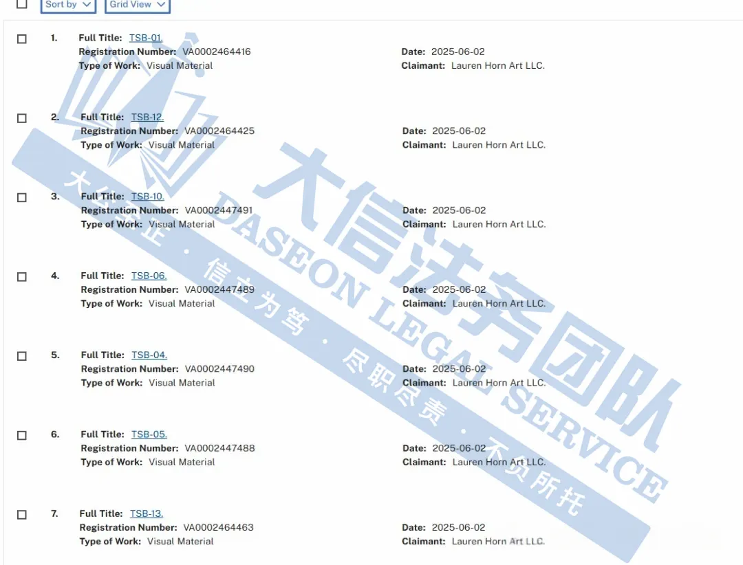 此案为版权维权,涉及13张版权图,以下是涉及版权的具体信息,除此之外,官网上的其他作品未经授权不得擅自使用,侵权风险极高,跨境卖家尽快检索下架,避免TRO侵权风险!