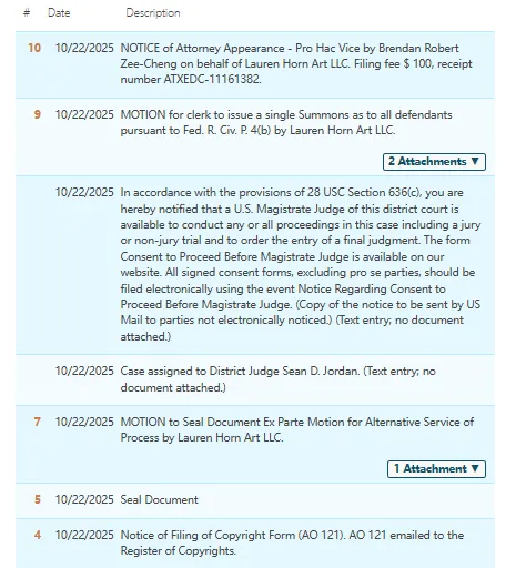 此案为版权维权,版权号:VA0002412626,涉及191张产品照片,于2024年5月30日下证,注意,原告起诉了24家店铺,被驳回仅保留一个店铺,以下是涉及版权的具体信息,除此之外,官网上的其他作品未经授权不得擅自使用,侵权风险极高,跨境卖家尽快检索下架,避免TRO侵权风险!