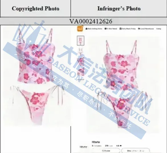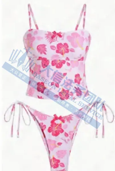 原告是来自深圳的卖家,专注于时尚舒适的泳衣销售业务,并且给服装企业授权自己的原创摄影作品,有一款粉色花卉系带比基尼套装采用侧系带设计,将大胆风格与舒适感完美融合,柔软有弹性的面料,在商品广告、营销推广这些商业场景用的照片有很高的消费者认知度。