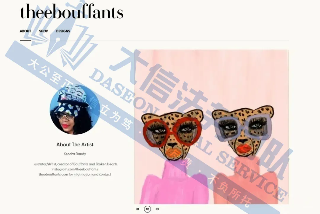 原告是品牌Bouffants & Broken Hearts的创始人,Kendra Dandy备受喜爱。她的风格独特,代表着千禧一代和Z世代的心声,作品明亮、年轻、原创且令人愉悦,每一幅都能激发观众独特的想象,带来奇妙冒险,她的插画作品在社交媒体上广受欢迎,并在全球范围内被授权用于家居装饰、美妆、服装和生活方式等多个产品类别。