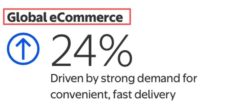 # 其中,美国市场作为沃尔玛电商业务的核心,第四季度电商销售同比增长27%,这是该部门连续第八个季度增长超20%;