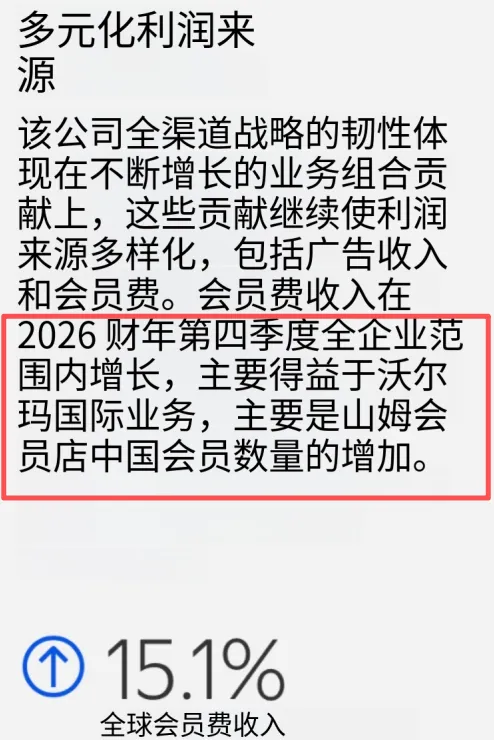 除了电商业务,山姆会员店是推动沃尔玛中国增长的另一核心动力,在本次财报中被重点提及,与电商业务形成协同增长效应。