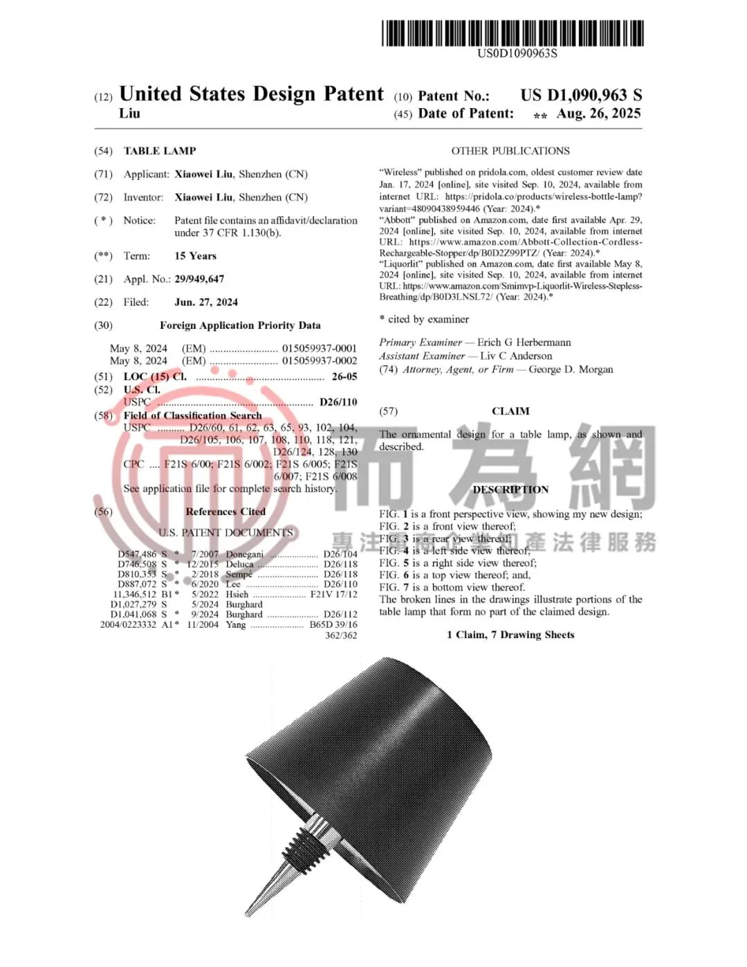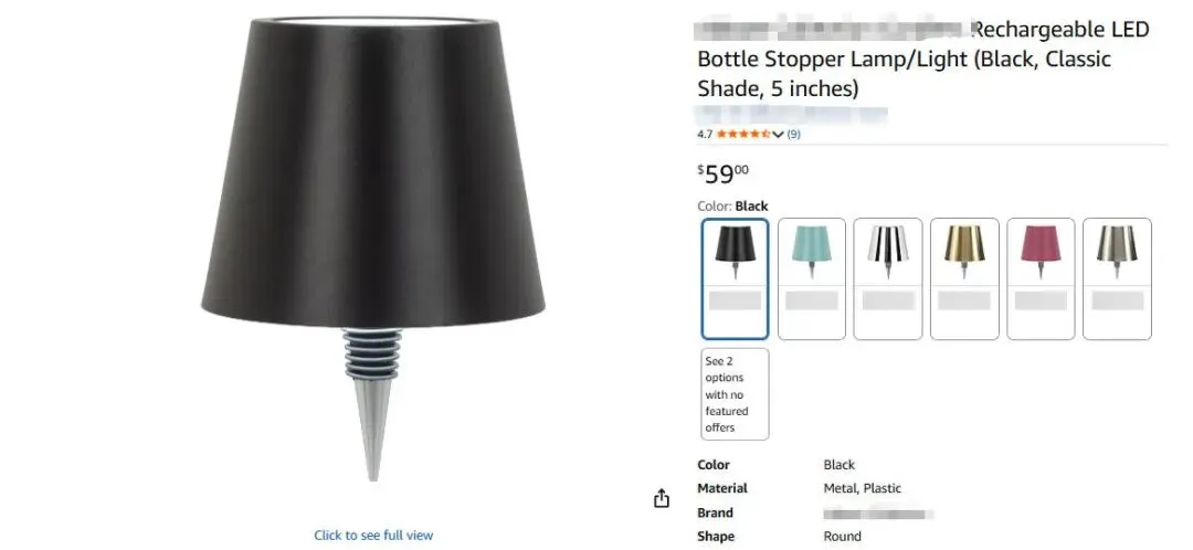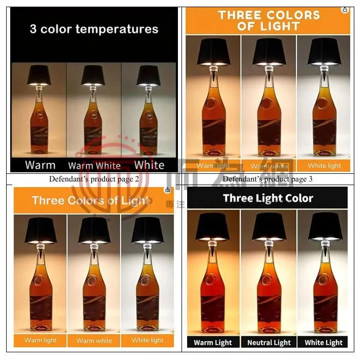 原告Xiaowei Liu是一位国人卖家,本案是其为名下一项名叫瓶塞台灯的外观专利发起的专利维权。这款LED瓶塞灯可以将空酒瓶巧妙变为氛围光源,为生活增添一抹暖意。其设计简约雅致,适配多数瓶口。