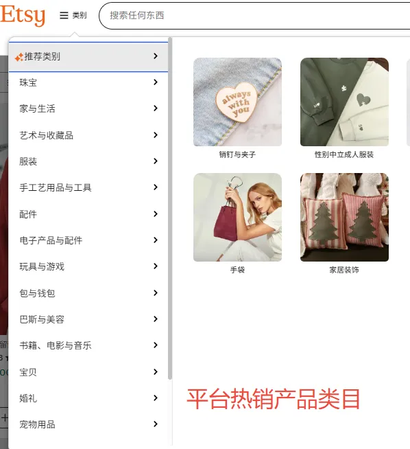 Etsy平台不限制类目,卖家可以在平台上售卖任何类目的产品,也支持虚拟产品。商家可以做垂直类目,也可以做铺货,经营模式任意选择,包容性极强。