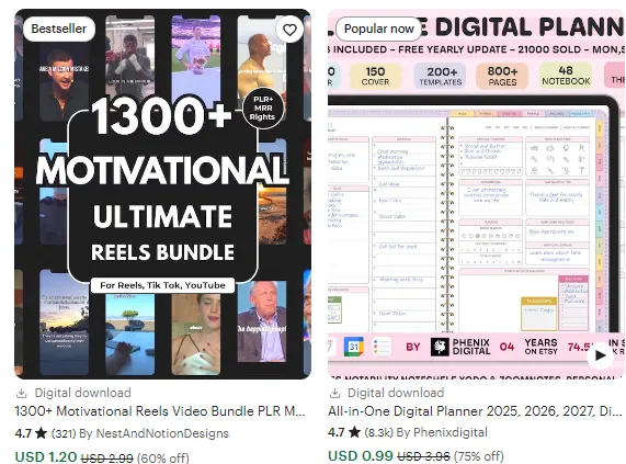 这类产品在前期的设计会比较复杂,需要卖家具有一定的设计能力,但是成本低,不需要考虑物流运输,可以直接在平台上在线交易,通常有数字打印产品、课程等。